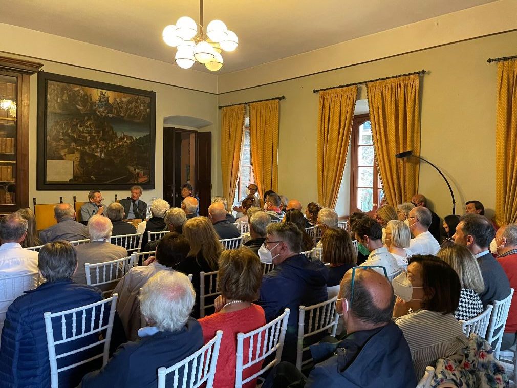 ORTA SAN GIULIO - 10-10-2022-- Nel pomeriggio di sabato 8 ottobre a Villa Bossi di Orta San Giulio, Sergio Romano, una delle più prestigiose penne del Corriere della Sera, ha presentato il suo nuovo libro “La scommessa di Putin” moderato dal giornalista Marcello Giordani. Sergio Romano, giornalista, politologo, ex ambasciatore Nato, è un importante personaggio politico, presente più volte nel posto giusto al momento giusto: basti pensare che si trovava a Parigi nel maggio ’68 o a Mosca quando arrivò Michail Gorbačëv. Il suo nuovo romanzo, estremamente attuale, tratta del conflitto russo ucraino, in particolare dei motivi reali di questa guerra, approfondendo le componenti caratteriali sia di Putin che di Zelens’kyj, l’effetto delle sanzioni e numerose altre domande che ognuno di noi oggigiorno si pone.